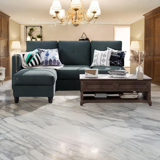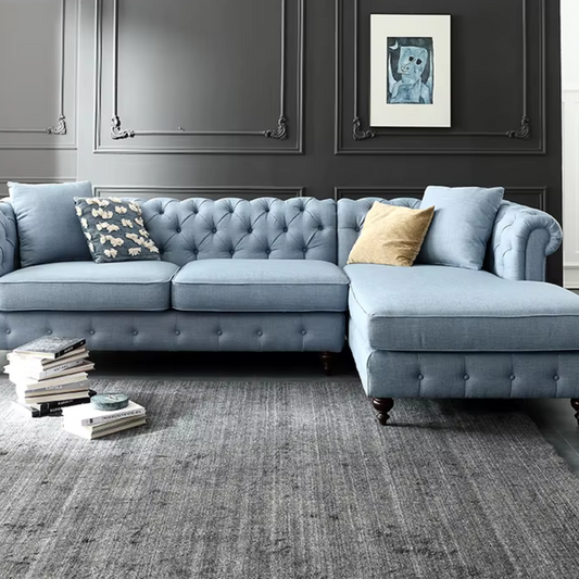 Chic Blue Tufted Sectional Sofa