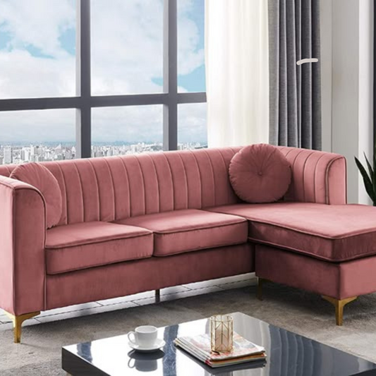 Rose Pink Velvet Sectional Sofa